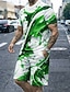 Miesten Kuvitettu Lehti Tehdas 2kpl T-paidat setit Shortsit ja T-paitasetti T-paita asut Lyhythihainen Tiukka pyöreä kaula-aukko Suunnittelija Vapaa-aika Mukava ulko- Loma Päivittäin 3D-tulostus