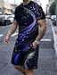 Miesten Marmori 2kpl T-paidat setit Kesän yläosat Lyhythihainen Lyhyet housut Tiukka pyöreä kaula-aukko Urheilu Vapaa-aika muodikas ulko- Loma Bile 3D-tulostus Kesä Sininen Purppura Apila