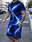 Miesten Galaksi 2kpl T-paidat setit Kesän yläosat Lyhythihainen Lyhyet housut Tiukka pyöreä kaula-aukko Urheilu Vapaa-aika muodikas Päivittäin Loma Bile 3D-tulostus Kesä Sininen Rubiini Purppura