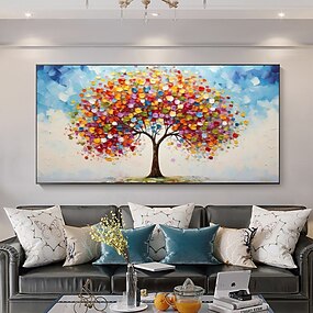 elämän kukkapuu abstrakti öljymaalaus alkuperäinen teksturoitu kangastaide käsinmaalattu olohuone kodin sisustus syntymäpäivälahja maisema seinäsisustus (ei kehystä)