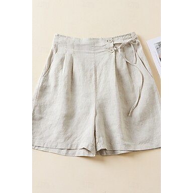 Naisten puuvilla-linnea shortsit kesäshortsit rantashortsit rento shortsit loma perus rento polvipituiset korkea vyötärö yksivärinen tasku joustava vyötärö mukavuus ulkona mikro-elastinen