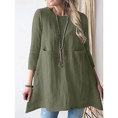 Naisten Mini mekko Cotton Blend Väljä mekko Rento mekko Tyylikäs Perus Vapaa-aika Päivittäin Loma Loose Fit Tavallinen 3/4 hiha Tiukka pyöreä kaula-aukko Apila Khaki Tumman sininen Kesä Kevät Syksy
