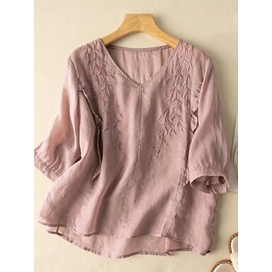 Naisten Puuvillaiset pellavapaidat Kirjailtu Napit Yhtenäinen väri Perus Vapaa-aika 3/4 hiha Tiukka pyöreä kaula-aukko Tavalliset topit Päivittäin Sininen Punastuvan vaaleanpunainen Aprikoosi Kesä