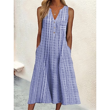 Naisten Armeijan vihreä Taivaan sininen khaki Kesä Kevät Midimekko Puuvillaiset pellavamekot Rento mekko Muoti Moderni Vapaa-aika ulko- Loma Päivittäin Loose Fit Tavallinen V kaula-aukko
