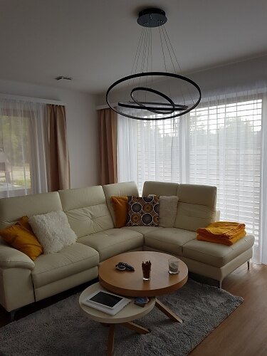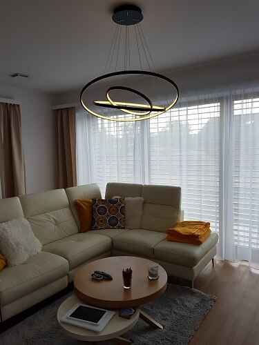 Světlo je velmi krásné. Využil jsem ho jako hlavní světlo do obyvácího pokoje, který je velký a prostorný. Světelnost lustru je velmi velká. Ovládání lustru mám pomocí dálkového ovladače, kde ovládám jak intenzitu světla, ale i barvu světla bíla a teplá bílá barva.