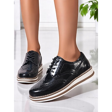 Naisten kiiltonahkaiset siivekkäät Oxford-korkokengät – klassiset brogue-nauhalliset ballerinat aikuisille naisille, sopivat erinomaisesti toimistotyöhön, liiketapaamisiin, työmatkakävelyyn ja tyylikkääseen arkikäyttöön.