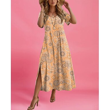 Naisten Maksimekko Paisley mekko Rento mekko Maksimekko Kesämekko Etninen Viidakko Loma Katu Pyhäpäivä Normaali Paisley-kuvio Lyhythihainen Tiukka pyöreä kaula-aukko Rubiini Sininen Purppura Oranssi