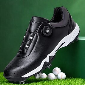 miesten valkoiset ja mustat golfkengät, joissa on piikkipohja, hengittävä päällinen ja tukeva pehmuste optimaalisen mukavuuden ja suorituskyvyn takaamiseksi kentällä