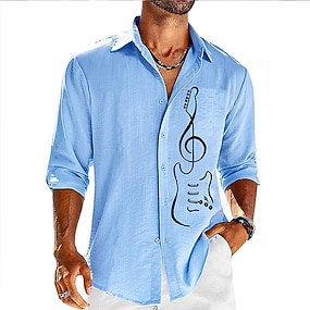 Homme Maîtres du conseil d'administration Guitare Chemise Chemise Boutonnée manche longue Mode Streetwear Designer Occasionnel Quotidien Extérieur Été Printemps Automne Col Rabattu Imprimé Bleu Rose
