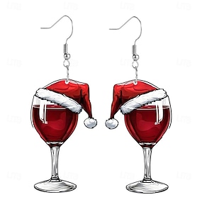 boucles d'oreilles en verre de vin de Noël | conception de chapeau de Père Noël festif | bijoux de fête de vacances pour femmes