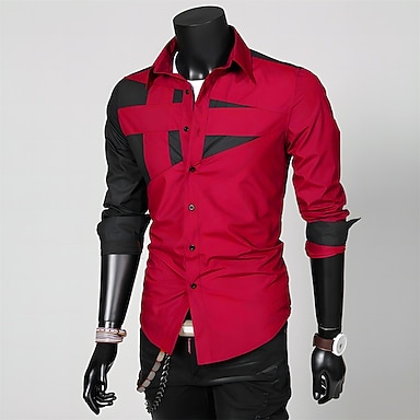 Homme Chemise Chemise à col Chemise boutonnée Bloc de couleur Mariage Extérieur Armée verte. Noir Blanche Vin manche longue Col Printemps Automne Vêtement Tenue Patchwork