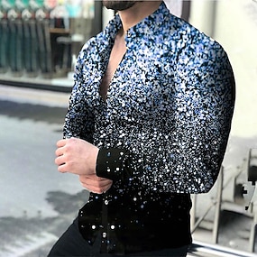 Homme Formes Géométriques 3D Constellation Chemise manche longue Mode Designer Occasionnel Occasionnel Extérieur Fête Été Printemps Col Rabattu Imprimé Boutonné Bleu Rose Claire Rouge Violet Dorée