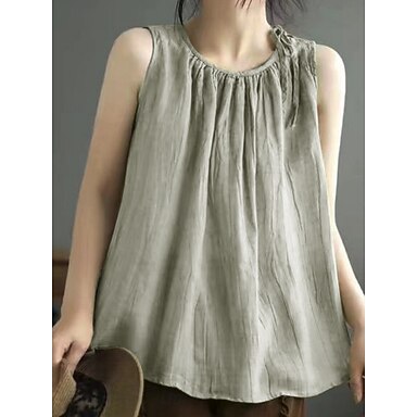 Femmes Chemises en coton et lin Débardeur caraco Couleur Unie Basique Occasionnel Sans manches Col ras du cou Hauts Réguliers Quotidien Noir bleu marine Violet Vert Gris Été