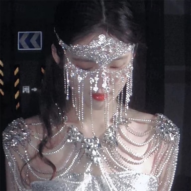 Masque de Mascarade Étincelant en Rhinestone Samba Accessories - Voile de Visage en Cristaux