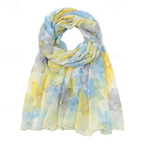 Foulard Rectangulaire Femmes Rue Quotidien Date Gris Jaune Écharpe Fleuri
