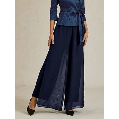 Femmes Culottes Jambe Large Pantalons à jambes droites Élégant Style Classique Occasionnel Longueur complète Taille moyenne Couleur Unie Taille Élastique Élastique Mariage Vacances Soirée bleu marine