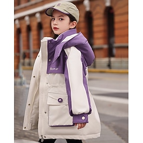 Doudoune Enfants Fille Lettre Sports Avec Poches Extérieur Polyester Manteau Vêtements d'extérieur 4 ans et + Hiver Noir