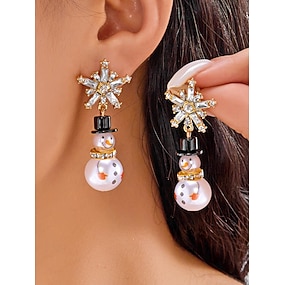 Boucles d'oreilles de Noël en alliage pour femmes avec motif bonhomme de neige et flocon de neige, parfaites pour la mode des fêtes et les cadeaux festifs