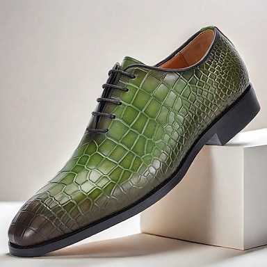 chaussures oxford en cuir à motif crocodile vert pour hommes – modèle à lacets en cuir de vachette de qualité supérieure pour les occasions formelles, professionnelles et spéciales