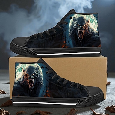 Baskets montantes en toile pour hommes avec motif de loup-garou effrayant, chaussures décontractées pour le streetwear et les fêtes d'Halloween