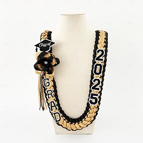 Ruban de remise de diplôme Lei 2025 double couche fait main, guirlande de fleurs en satin pour diplômés, décoration de fête de cérémonie de remise de diplômes