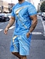 Homme Géométrique Ligne 2 pièces Ensembles de tees Hauts d'été Manche Courte Pantalon court Col ras du cou Sport Décontracté Quotidien Occasionnel Extérieur Vacances Sortir Impression 3D Été Bleu
