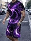 Homme Géométrique 2 pièces Ensembles de tees Hauts d'été Manche Courte Pantalon court Col ras du cou Sport Occasionnel Tendance Quotidien Extérieur Vacances Impression 3D Été Bleu Rouge Violet