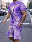Homme Graphique 2 pièces Ensembles de tees Hauts d'été Manche Courte Pantalon court Col ras du cou Sport Occasionnel Extérieur Vacances Sport Impression 3D Été Blanche Violet Marron