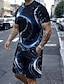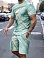 Homme Géométrique 2 pièces Ensembles de tees Hauts d'été Manche Courte Pantalon court Col ras du cou Athleisure Sport Occasionnel Quotidien Impression 3D Été Bleu œuf de mer Gris Vert