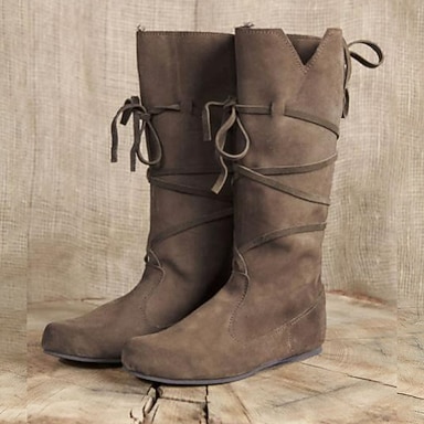 bottes à lacets marron de style médiéval pour femmes - parfaites pour les foires de la Renaissance, les événements de cosplay et les rassemblements à thème médiéval en plein air