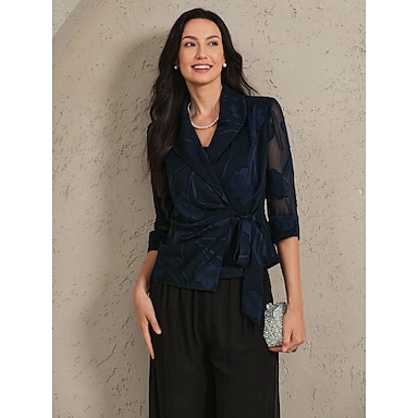 Femmes Chemisier Hauts Élégants Hauts de soirée Paillettes Plume Élégant Manche 3/4 Col mandarin Hauts Réguliers Soirée Tenue formelle Tenue de cocktail Bleu Roi Printemps Automne Hiver