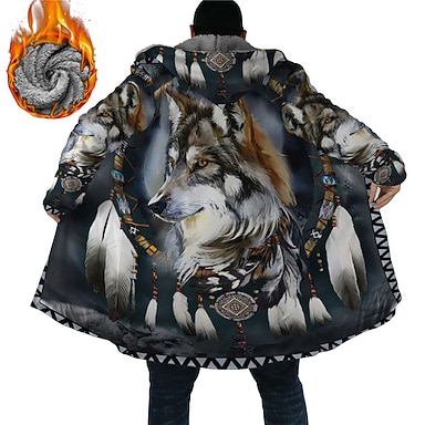 Homme Animal Loup Impressions Graphiques Manteau d'Hiver Veste en Polaire Manteau Chaud Confortable Respirant Mode Streetwear Sport Sport & Loisir Tenue quotidienne Sortir Fermeture éclair Avec