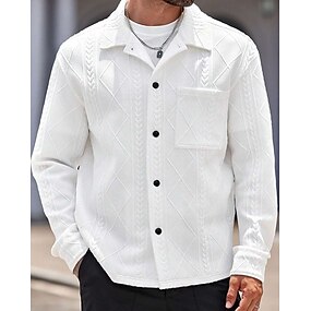 Homme Veste-chemise Surchemise Veste Uni Vacances Tenue quotidienne Blanche manche longue Revers Automne & Hiver Vêtement Tenue Jacquard