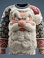Pull de Noël moche Homme Père Noël Impression 3D Dessin Animé 3D Pull Tricots Col Rond Occasionnel Vacances Quotidien Festival Impression 3D Tricot Garder au chaud manche longue Printemps Automne