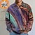 Homme Abstrait Géométrique Polo Chemises Themmal manche longue Polos Revers Occasionnel Athleisure Fête Tenue quotidienne Impression 3D Automne Hiver Bleu Arc-en-ciel Multi Couleur