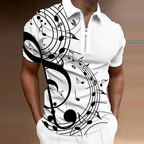 Festival de musique Homme Musique Polos à zip Chemise de golf Manche Courte Polos Chemises à Col Occasionnel Vêtements de vacances Vêtements de festival Tenues de fête Impression 3D Polo à fermeture