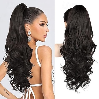 Extension à clip Queue-de-cheval Classique / Synthétique / Faciliter l'habillage Cheveux Synthétiques Pièce de cheveux Extension des cheveux Ondulé / Ondulation Naturelle 22 pouces Fête / Soirée