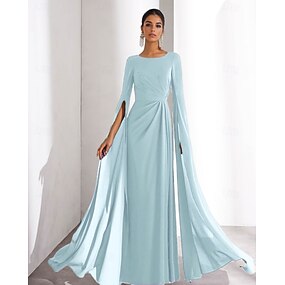 Robe de soirée fourreau Empire formelle avec traîne balayante traîne brosse à manches longues col bateau pour automne invitée de mariage en chiffon avec plis pour impressionner