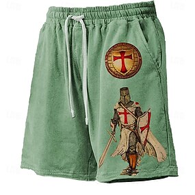 Homme Chevaliers Templiers Croix Religion Shorts de survêtement Shorts de plage shorts en tissu éponge Taille Moyenne ancien Occasionnel Quotidien Fête Vêtements de rue Cordon de serrage Taille