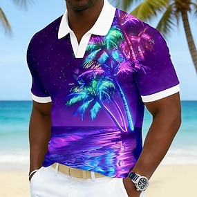 Homme A Ombre Palmier Polos Hawaïens Manche Courte Polos Col en V Occasionnel Resort Athleisure Tenue quotidienne Vêtements de vacances Impression 3D Printemps & Été Bleu Rose Claire Violet