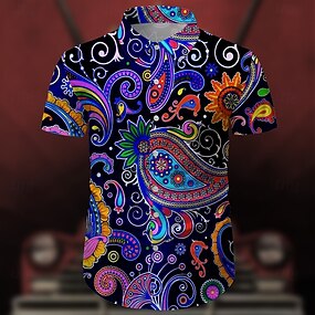 Rétro Vintage Années 1970 Chemise Chemise Aloha Hippie Paisley Déguisement Homme Vacances Soirée Défilé de la Fierté Adulte Chemise