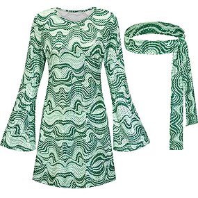 Rétro Vintage Années 1970 Disco Robe Bandeau Ensemble d'accessoires Manches Evasées Hippie Impression Déguisement Femmes Mascarade Soirée Fête / Soirée Défilé de la Fierté Adulte Robe Plus