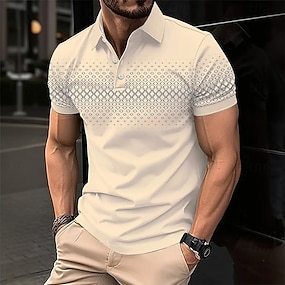 Homme Géométrique Polo Manche Courte Polos Chemises à Col Vêtement décontracté de travaile École Extérieur Athleisure Tenue quotidienne Impression 3D Été Marron foncé Blanche bleu marine