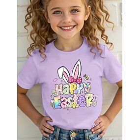 Pâques Fille 3D Lapin Tee-shirts Chemises Manche Courte 3D effet Eté Actif Mode Le style mignon Enfants 3-12 ans Col Ras du Cou Extérieur Casual du quotidien Standard