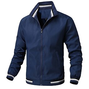Homme Veste Légère Extérieur Sport Fermeture éclair Avec Poches Printemps & Automne Couleur Unie Sports Frais Col montant Régulier Noir bleu marine Kaki Gris Veste