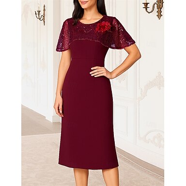 Robe de bal en A longueur de thé robe de fête robe cocktail robe mère de la mariée manches courtes col ras du cou élégante vintage fête invitée au mariage avec broderie couleur bloc