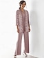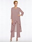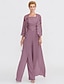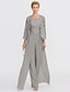 Pantalon 3 Pièces Mère de la Mariée Élégante Grande Taille Longueur de Sol Chiffon Sans Manches Enveloppe Inclus avec Couleur Solide pour impressionner