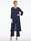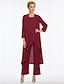 Ensemble Tailleur-Pantalon Formelle Mariage à la Plage 3 Pièces Mère de la Mariée Élégante Col Bijou Chiffon Manches Longues Enveloppement Inclus Broderie de Dentelle Couleur Unie