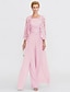 Combinaison deux pièces mère de la mariée sur la plage invité de mariage formel élégante enveloppe incluse col bateau longueur sol chiffon manches 3/4 avec appliques