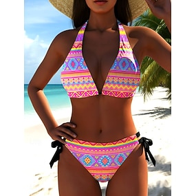 Maillot de bain femme bikini 2 pièces boho sexy plongeant graphique géométrique sans manches